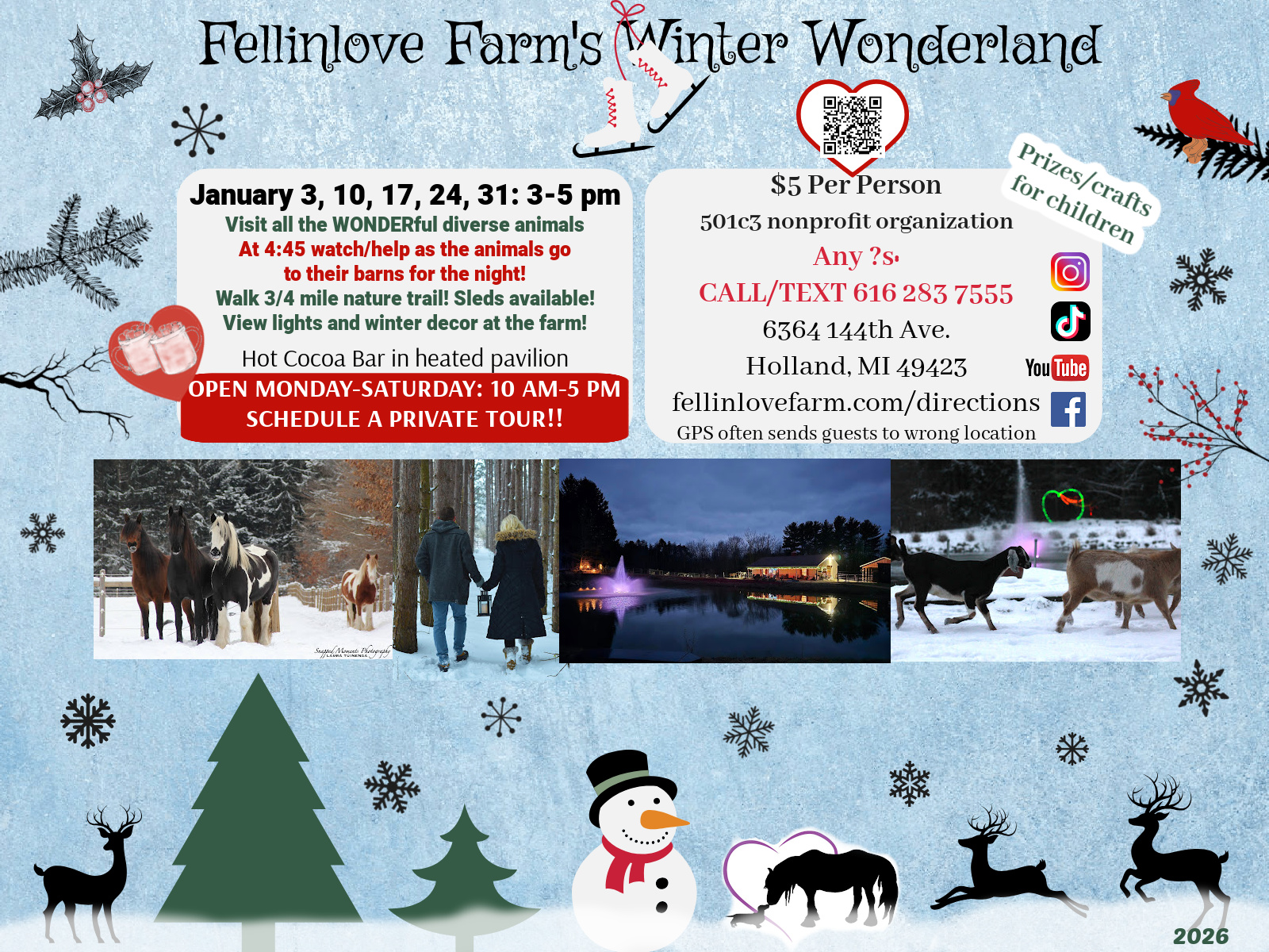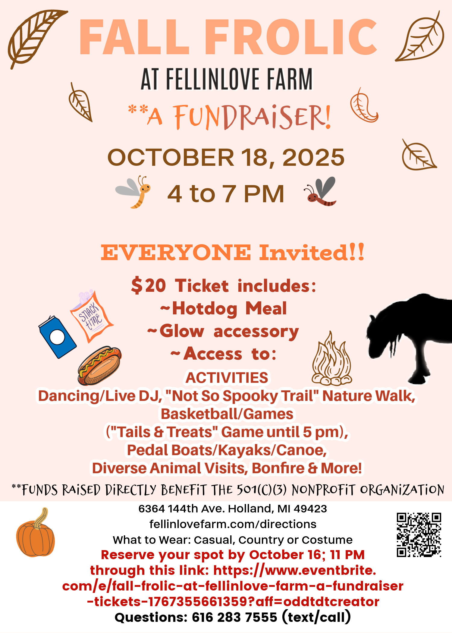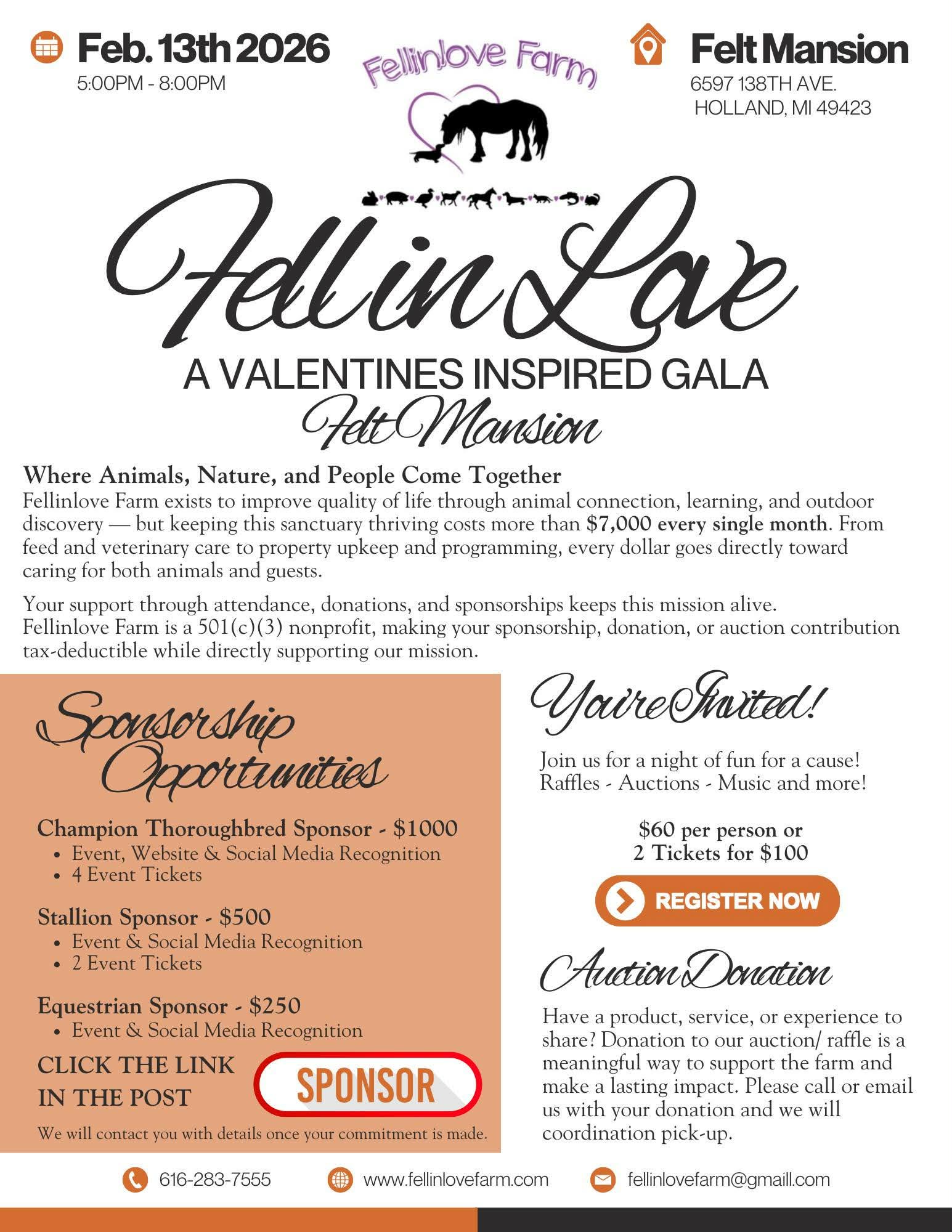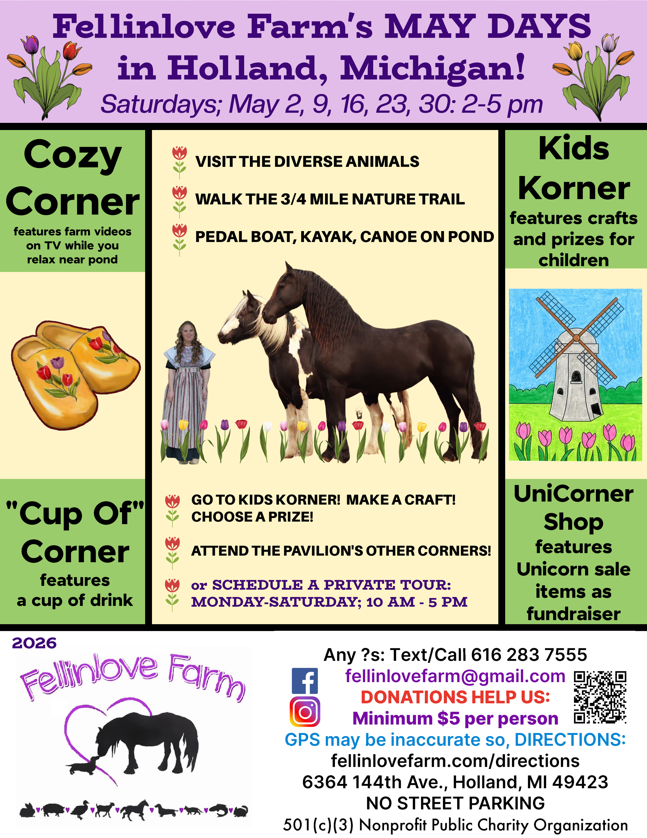 Fellinlove Farm is a 501(c)(3) nonprofit organization (public charity) we provide outdoor activities, socialization and educational opportunities by hands-on animal interactions. We have welcomed a significant increase in providing individualized field trips, tours, volunteer work opportunities and community programs. Our continued success depends on collaborations and donors. Together we can help more people "Experience the JOY"!